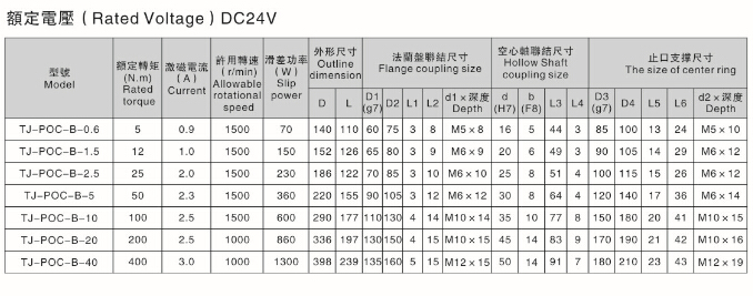 臺灣天機(TJ-POC-B)中空軸磁粉離合器法蘭輸入、空心軸輸出、止口支撐、內殼旋轉,采用DC24V,進口軸承、磁粉,精度小于0.01mm。天機傳動率先通過ISO9001:2008標準質量管理系統認證,建立完善的質量管理體質、服務體系。天機傳動成立至今,一直專注于工業領域專用的磁粉離合器/制動器及電磁離合器/制動器等系列傳動設備的研發、設計、生產。