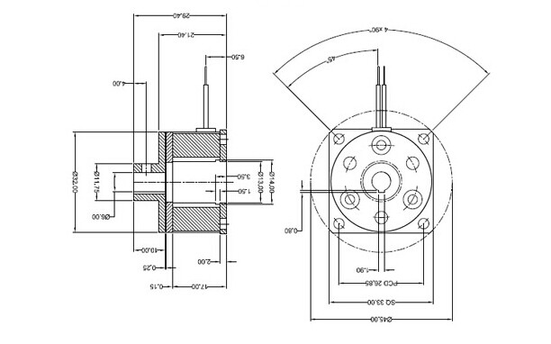 微型電磁剎車器參數(shù)與安裝尺寸圖如下: