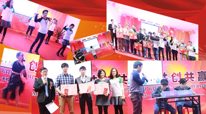 告別成績卓然的2014,喜迎2015,天機傳動在2月3號舉行了隆重的新年晚會,年會中羅總、李總分別送出了祝福,雖言語不多,卻句句發人深省,引人深思。古語有云:“良士在堂,役車其休,今我不樂,日月其慆。”意思是說,這么多優秀的人士都到了一起,這恰好是在我們該休息放松、歡聚的時候,如果這時候我都不及時放松、收獲快樂,那太陽和月亮都要陰暗了。