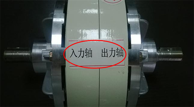 3、輸出/入軸的標(biāo)示,這標(biāo)示是方便用戶辨別輸出軸與輸入軸,據(jù)很多用戶反饋說用其他品牌的磁粉離合器都分不清哪邊是輸入哪邊軸是輸出軸,看下圖: