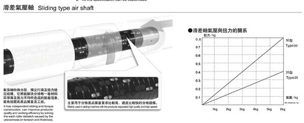 鍵條式氣脹卷軸,鍵式氣壓軸軸生產(chǎn)商(脹氣軸,氣壓軸)適用于扭力及承載重量較高的分條、印刷、復(fù)卷、貼合、制袋、造紙或其他相關(guān)卷取及發(fā)送料的機械配合使用。本型式有45銅及鋁合金兩種,一般承重低于800kg,長度小于1500mm軸,建議使用鋁合金管。